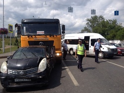 Truck, bus and three foreign-made cars collided with each other in Ufa downtown