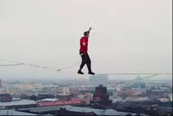 Extreme sports fans from Ufa walked along cable over abandoned factory in St. Petersburg