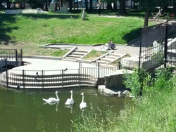 Three snow-white swans can be seen at Ufa Aksakov Public Garden